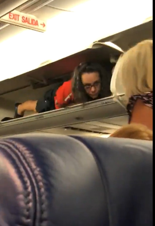 Một nữ tiếp viên hàng không đã khiến rất nhiều người khâm phục về kỹ năng nhào lộn cũng như sự khéo léo của chị, khi chị trồng cây chuối và đóng các ngăn hành lý ở trên cao bằng chân (có đi giày).