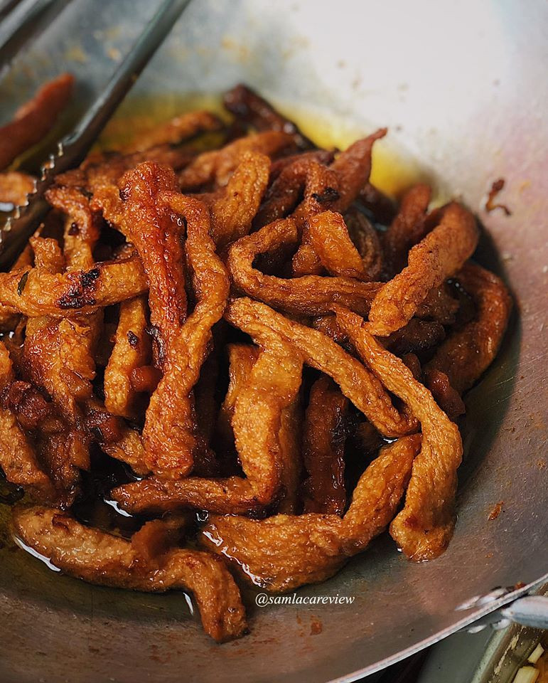 Một tô phủ phê đồ ăn - Ảnh: Sam Nguyễn Quán nhỏ thôi, nằm khiêm tốn kế bên tiệm Bánh Tráng Củ Cải (đối diện trường THCS Hậu Giang, gần đường Hồng Bàng, Quận 11, TP.HCM) nhưng đông khách lắm. Quán này chỉ bán một món duy nhất: Bánh mì xíu mại siêu to khổng lồ ăn với chả cá chiên.