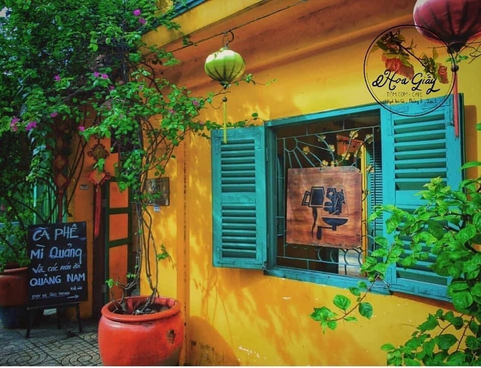 Ảnh: Hoa GiấyHoa giấy nằm khiêm nhường trên một con hẻm nhỏ yên tĩnh, tách biệt hẳn với không khí náo nhiệt của đường phố Sài Gòn. Tiệm được thiết kế theo phong cách vintage với nước sơn vàng và cánh cửa gỗ sơn xanh cổ điển, bụi hoa giấy bung nở rực rỡ cả một góc trời, tấm biển hiệu gỗ mộc mạc, dàn đèn lồng treo cao, những bức họa phố cổ in màu thời gian… mọi thứ đều nhỏ xinh, giản dị và ấm áp hệt như một Hội An thu nhỏ.