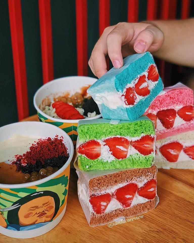 Ở đây, món đá bào man mát, lành lạnh được kết hợp với đủ loại topping như dâu, bánh flan, phô mai sợi, đậu phộng, sốt ca cao, sốt trà xanh… tùy bạn chọn. Giá dao động khoảng 25K/ thố. Chắc chắn bạn sẽ không thể làm ngơ với món sandwich kem dâu (25K/ bánh) với 5 loại vỏ bánh màu sắc. Bánh mềm xốp, kem khá nhiều, béo ngọt vừa đủ ăn cùng dâu chua chua rất đúng vị.