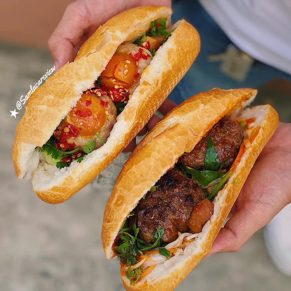 Bạn sẽ cảm thấy xao xuyến khi nhìn thấy nồi xíu mại bự chảng với hai loại nhân: Trứng muối và lạp xưởng. Kế đó là nồi đựng cá kho cà chua, thịt heo xắt bự. Một ổ tùy loại nhân bạn chọn có giá dao động từ 27K - 30K. Món mau hết nhất là bánh mì xíu mại trứng muối và bánh mì thịt bò nướng.