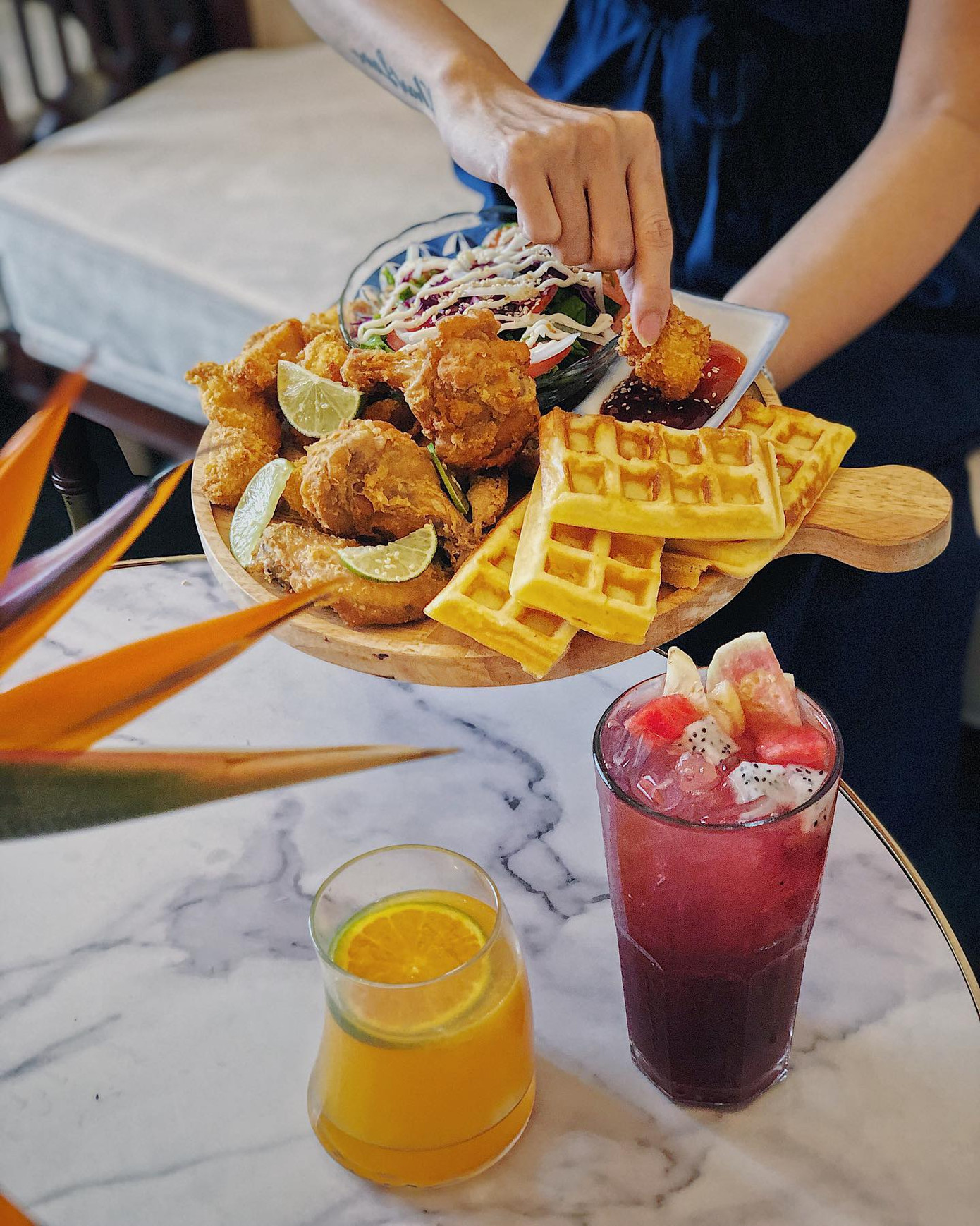 Ngoài các loại trà trái cây, các món bánh ăn cùng kem, tiệm còn có cả set ăn trưa bao gồm gà rán, các loại salad cho các bạn ăn kiêng hay mê rau... Giá các món dao động từ 49K - 79K/ món, chất lượng tương đối ổn trong không gian xịn xò ngay trung tâm.