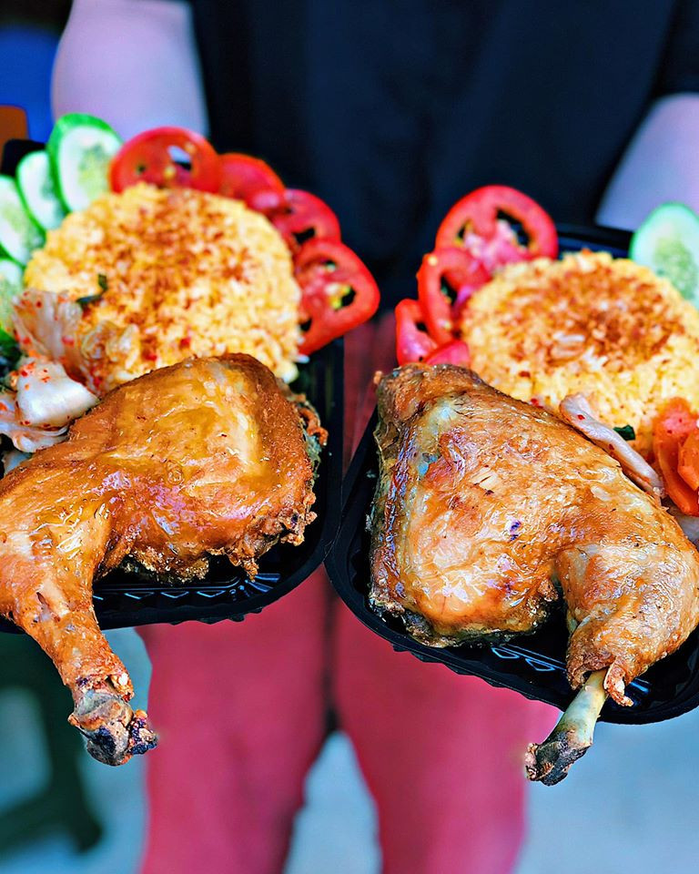 Chỉ nhìn thôi đã thấy hấp dẫn rồi - Ảnh: Sam Nguyễn Cơm chiên chín đều và thơm dẻo. Miếng gà bự chá bá, chiên hơi xém nên da giòn rụm, vừa đùi vừa ức, thịt ngập răng. Thịt gà được ươm ướp thấm gia vị, đậm đà trên từng thớ thịt. Một phần cơm gà xối mỡ còn được tặng kèm canh rong biển và chút kimchi ăn kèm để cân bằng vị giác. Nếu bạn ăn khỏe, đĩa cơm này vừa đủ no. Còn nếu bạn ăn hơi yếu, thì gọi 2 phần cho 3 người ăn là vừa đẹp. Một hộp cơm gà nhìn chất lượng giá 40K, hơi bị ổn.