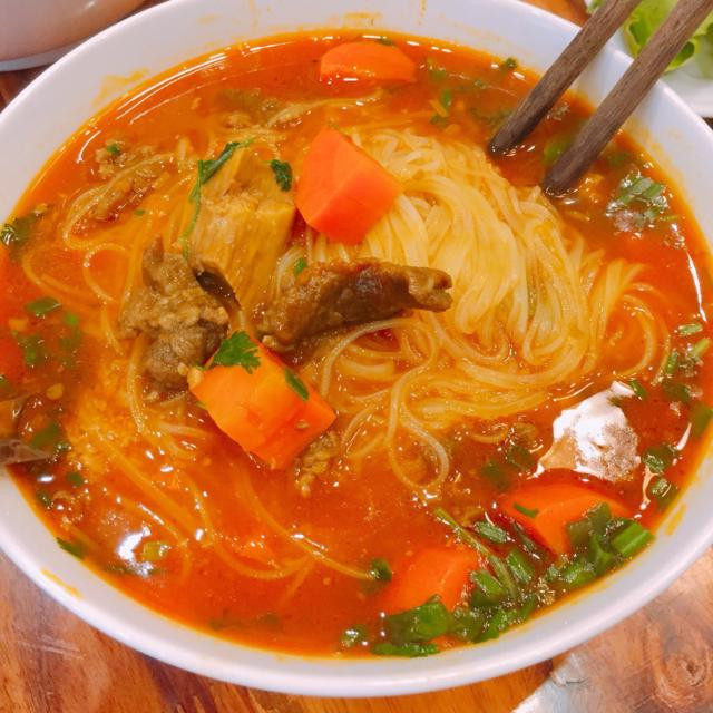 Nằm đối diện với Nét Huế trên phố Mai Hắc Đế, hủ tiếu bò kho ở đây được đánh giá khá cao và chuẩn vị. Nước dùng đậm đà và sánh, thịt bò được kho mềm, nhưng không bị nát và quá mỡ, còn hủ tiếu là sợi hủ tiếu mảnh. Tất cả các nguyên liệu hòa quyện với với nhau, thịt ngấm gia vị, hủ tiếu cũng hòa vào nước dùng, chứ không bị lạt hay hủ tiếu vẫn còn khô cứng như nhiều chỗ khác. Thịt bò có chút gân nên vẫn còn hơi dai khiến bạn nhai thích thú. Một bát hủ tiếu ở đây có giá khoảng 60.000đ.