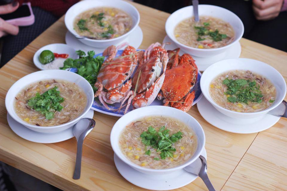 Món ăn đặc sản của Sài Gòn này không dễ dàng có thể tìm được hàng ngon ở Hà Nội. Vì thịt cua trong kia thường dày và chắc thịt, vị ngọt cũng rất riêng. May thay ở Xã Đàn có một quán súp cua được đánh giá cũng kha khá giống vị Sài Gòn. Súp cua ở đây chuẩn vị hải sản, chứ không phải súp ngô gà chỉ rắc thêm cua như ở nhiều quán ăn khác, với thịt cua và càng cua là 2 nguyên liệu chính đã được bóc vỏ tỉ mỉ, nấu cùng nấm, ngô, trứng chim cút, sau đó bỏ thêm tí rau mùi và tiêu. Bát súp này có giá 25.000đ. Ngoài ra quán ăn còn có nhiều món hải sản khác như càng ghẹ, ốc, hàu, sò điệp... và cũng được chế biến theo kiểu Sài Gòn.