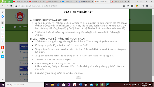 Để đánh giá khách quan năng lực của học sinh, trang web khảo sát đã có lưu ý không được bật thêm tab khác hoặc không được tải lại trang trong thời gian làm bài. Tuy nhiên, nhiều bạn gặp tình trạng trang web bị lag, đứng lại rất lâu đến tận 15 phút, thậm chí tài khoản tự động thoát ra.