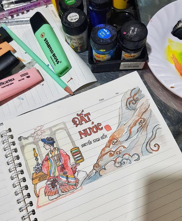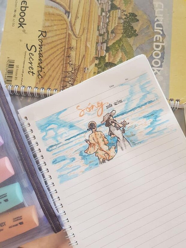 Thoạt nhìn thì ai cũng nghĩ đây là các tác phẩm do nữ sinh thể hiện, thế nhưng không, những đường nét ấn tượng bên trong quyển vở Văn học độc đáo trên là do nam sinh Huỳnh Thái Nhật (2002, Cà Mau), hiện đang theo học lớp chuyên D 12A6, trường Trung học Phổ thông Cái Nước, tỉnh Cà Mau vẽ.