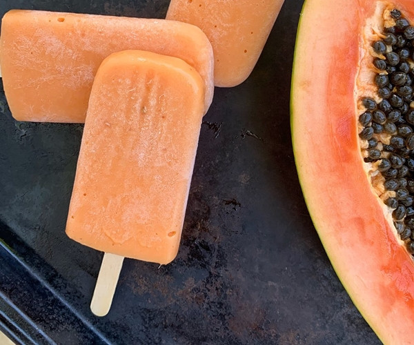 Cho đu đủ, mật ong và nước vào máy xay sinh tố, xay nhuyễn. Đổ ra âu, cho đường, nước chanh và muối vào, khuấy kỹ. Đổ vào các khuôn kem que và để vào ngăn đá cho đông lại (ít nhất 6 tiếng).