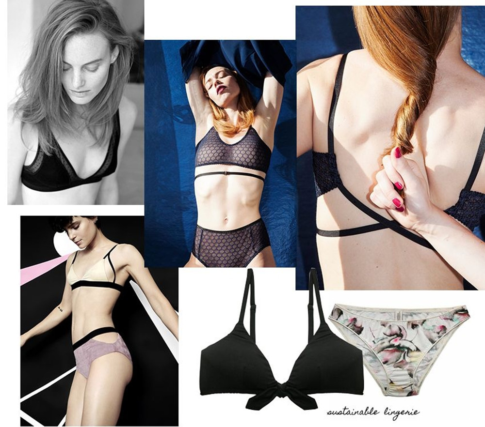 Một số thương hiệu thời trang như Reformation và Everlane đã đưa ra các dòng đồ lót của riêng họ, ưu tiên sử dụng các chất liệu như tencel - một loại sợi có nguồn gốc từ thực vật được sử dụng trong rất nhiều trang phục, giúp tăng cường khả năng thoáng khí của quần áo, và họ cũng sử dụng cả ren tái chế và lưới sinh thái vào các sản phẩm đồ lót. Tức là các hãng này chọn kết hợp cả hai phương pháp để sản xuất đồ lót bền vững.