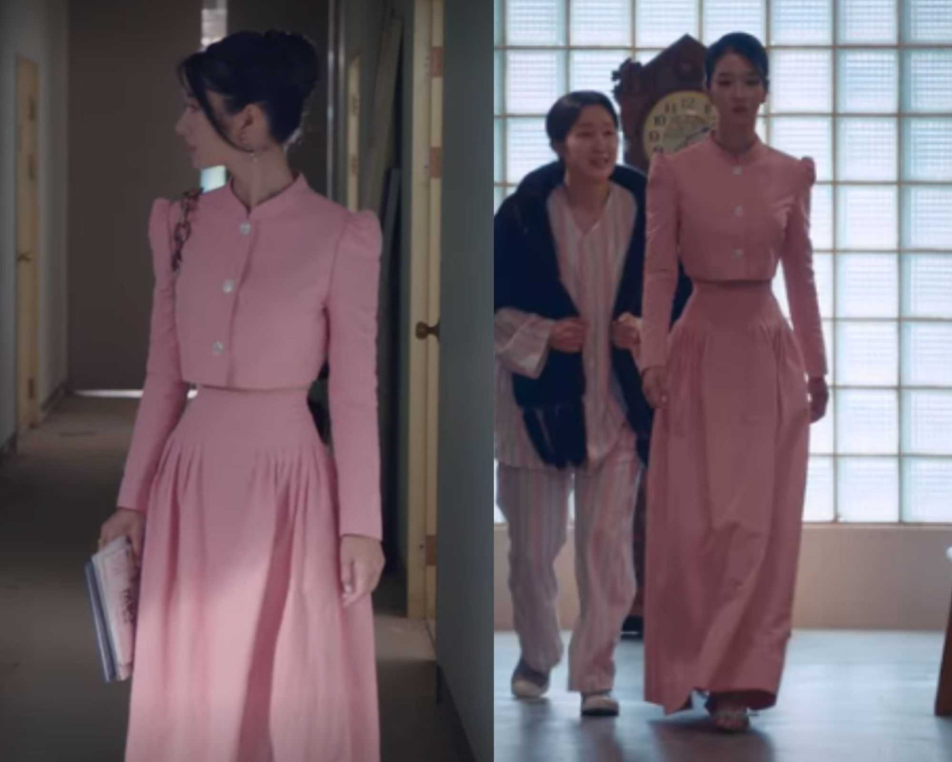 Nổi bật nhất là bộ váy hồng khoe vòng eo nhỏ đến khó tin của Seo Ye Ji trong tập 6, bộ váy nằm trong BTS của nhà thiết kế nổi tiếng người Hàn Quốc Minju Kim.