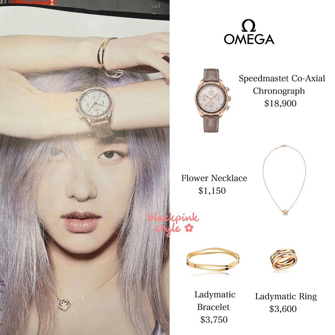 Nếu bạn còn đang sốc với giá trị set phụ kiện ở ảnh trước, bạn cần thêm vài phút để "đón nhận" giá trị của set đồ ở ảnh này. Chiếc đồng hồ Rosé đeo ở ảnh này có giá lên tới hơn 811 triệu đồng, chiếc vòng cổ mảnh mai có giá khoảng 26,6 triệu đồng, lắc tay có giá khoảng 87 triệu đồng, hai chiếc nhẫn có giá lần lượt 48,6 và 186,5 như ở ảnh trước. Hai chiếc nhẫn còn lại có giá khoảng 83,4 triệu đồng và hơn 89 triệu đồng.