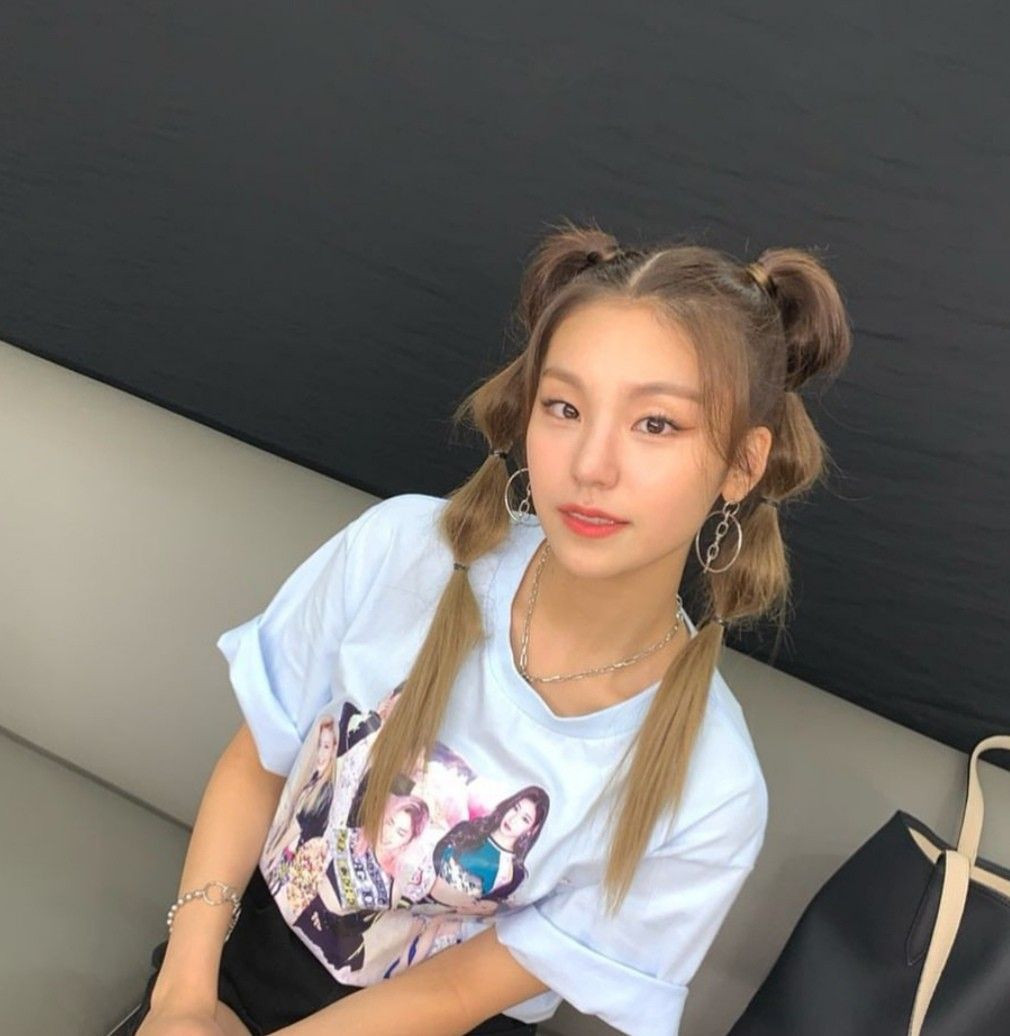 Kiểu tóc này gần giống như tóc buộc chun 7 sắc cầu vồng, nhưng phức tạp hơn một chút. Trước tiên bạn buộc tóc hai bên thật cao, sau đó mỗi lần buộc thêm một nấc chun, bạn đẩy cho tóc phồng lên một chút như chiếc đèn lồng nhỏ. Kiểu tóc này thích hợp với những bạn cá tính nổi bật, thích phong cách khác lạ, đúng như tính cách của cô nàng Yeji (ITZY).