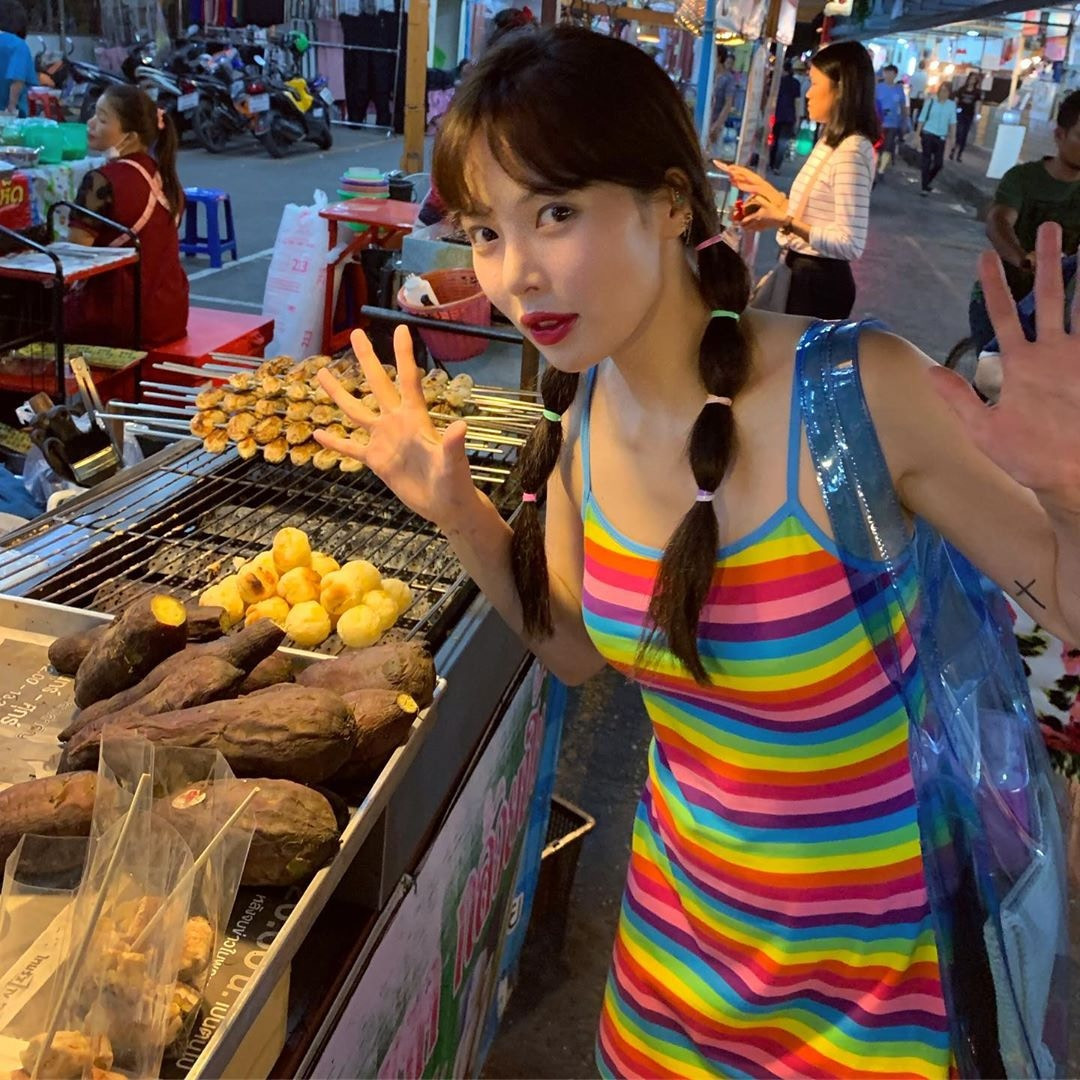 Dễ thực hiện lắm luôn ấy, bạn mua một hộp chun đủ màu sắc về, chia tóc sang hai bên buộc thấp. Rồi buộc thêm nhiều nấc chun các màu như HyunA, vừa gọn gàng, vừa xinh xắn lại trông rất khác biệt. Không chỉ đi học, kể cả đi dạo phố hay đi du lịch, bạn cũng có thể để kiểu tóc này, chụp ảnh “sống ảo” cũng rất đẹp đấy chứ, đúng không?