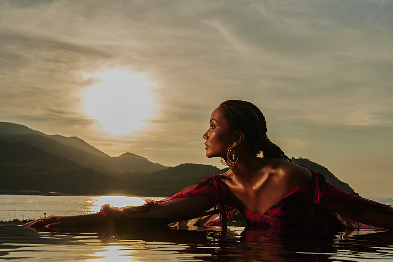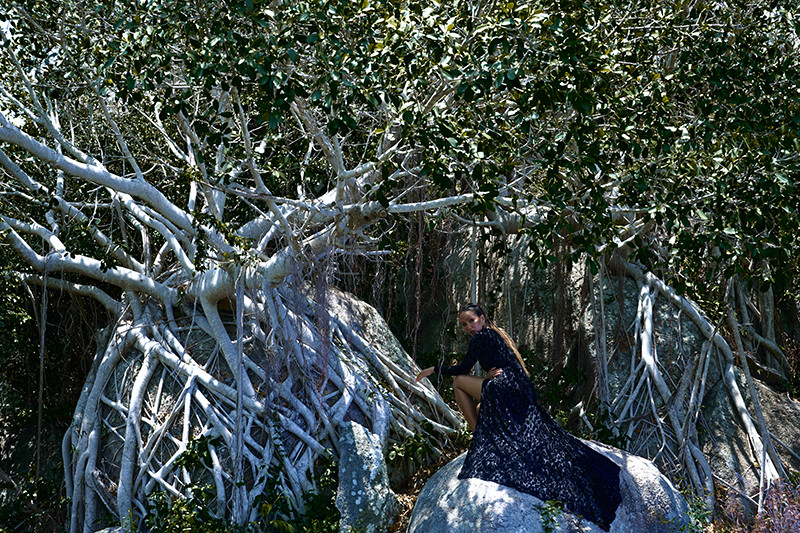 Do đó, những chiếc váy trong BST lần này cũng lấy ý tưởng từ sự kết hợp giữa núi rừng hoang dã cùng với cát vàng, nước biển mượt mà như những dải lụa.