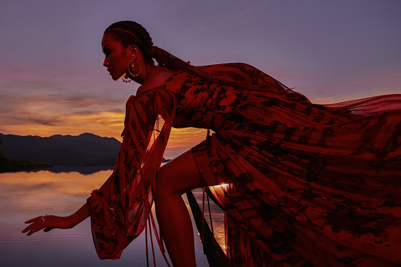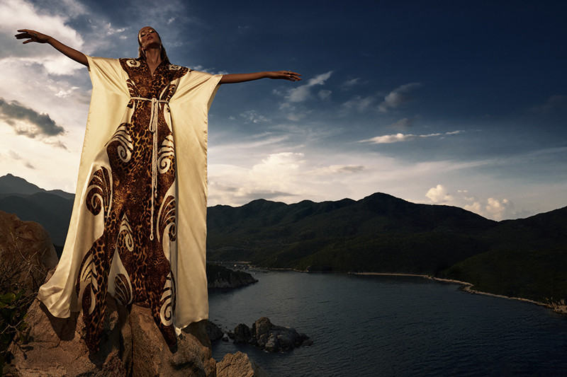 H’Hen Niê trong bộ ảnh tựa như một nữ thần quyền lực. Để toát lên được tinh thần nhà thiết kế mong muốn, nàng Hậu diện những mẫu váy dạ hội trong khi vẫn đứng cheo leo trên những mỏm đá, vách núi.