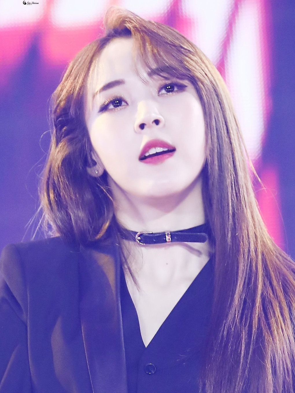 Bên cạnh ánh mắt sắc lạnh, đôi môi tam giác cũng là điểm nhấn ấn tượng trên gương mặt Soyeon ((G)I-DLE).