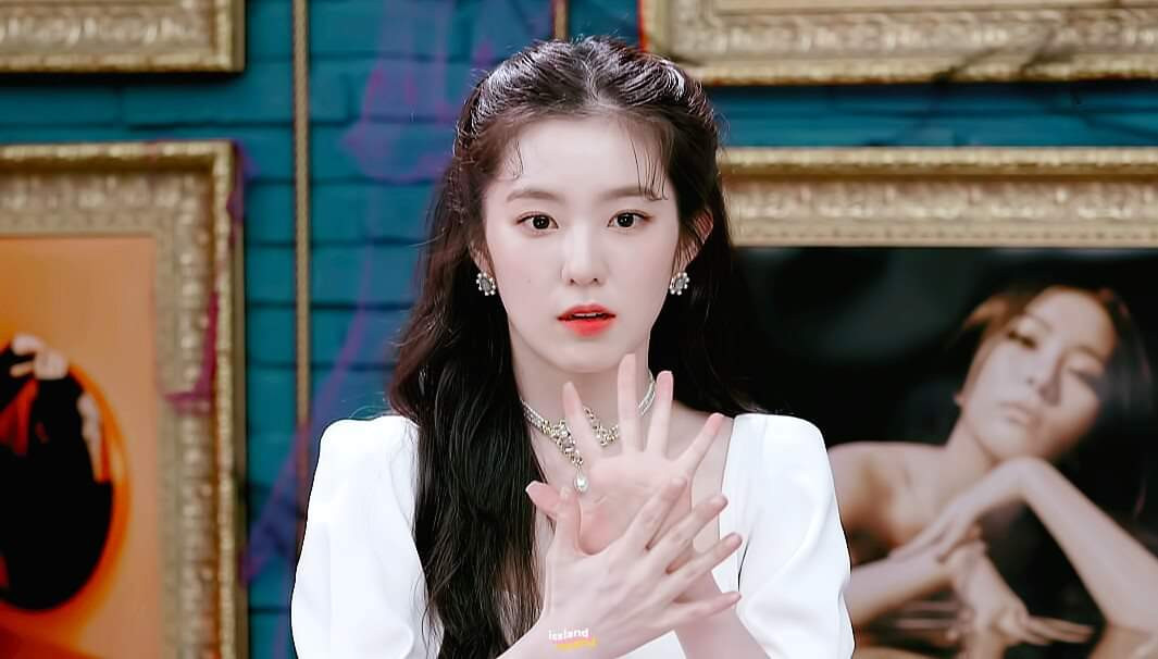 Xuất hiện trên Vlive lần này, Irene gây chú ý với tạo hình xinh đẹp, kiểu tóc dễ thương để lộ tóc mai, làm xoăn nhẹ, kiểu tóc này cũng góp phần làm thon gọn khuôn mặt.