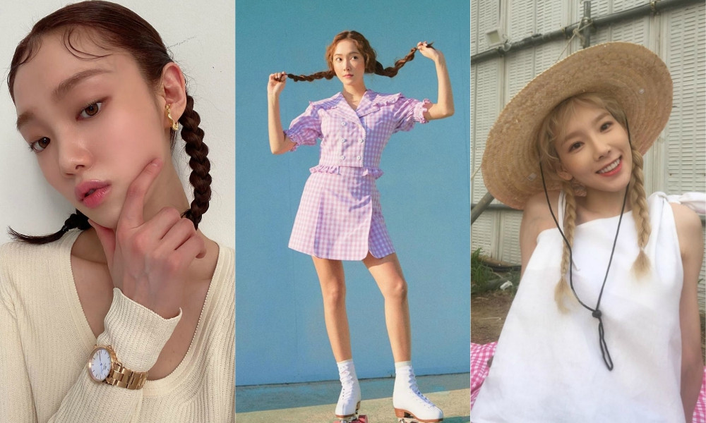 Cả Lee Sung Kyung, Jessica và Taeyeon đều cùng chọn kiểu thắt bím hai bên với phần mái được làm xoăn nhẹ lạ mắt.