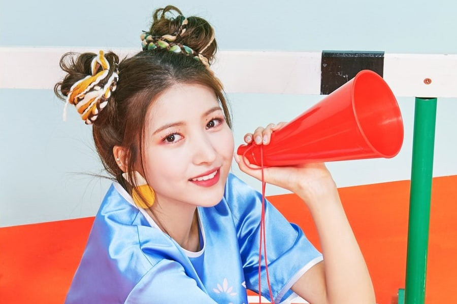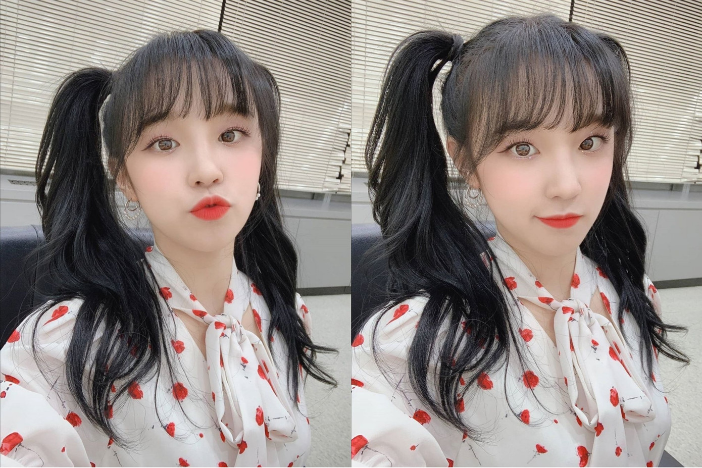 Sowon (GIRLFRIEND) lại chọn chun buộc tóc mỗi bên một màu cho mái tóc thêm phần bắt mắt và thu hút.
