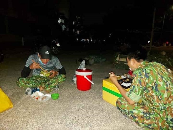 Khi tất cả việc sắp xếp chỗ ăn nghỉ cho người dân xong xuôi, họ mới an tâm nghỉ ngơi và ăn uống. Bởi vậy, bữa tối của họ cũng đã sang đêm muộn.