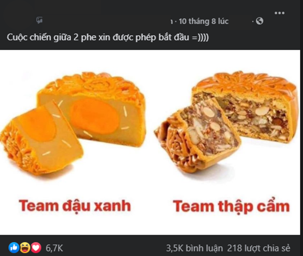 Dù chưa tới giờ "G", cộng đồng mạng đã vô cùng háo hức lựa chọn vị bánh ưa thích của mình. Người chọn #team_thập_cẩm, người chọn #team_đậu_xanh. Cuộc chiến này trở thành trào lưu trên mạng xã hội, diễn ra mấy ngày nay nhưng vẫn chưa kết thúc vì cả 2 phe không ai nhường nhịn ai. Để giải quyết tình thế “ngàn cân”, nhiều bạn "mở lối đi riêng" khi chọn hương vị "cá tính" khác khiến cho cuộc chiến trở nên “dữ dội” hơn bao giờ hết.