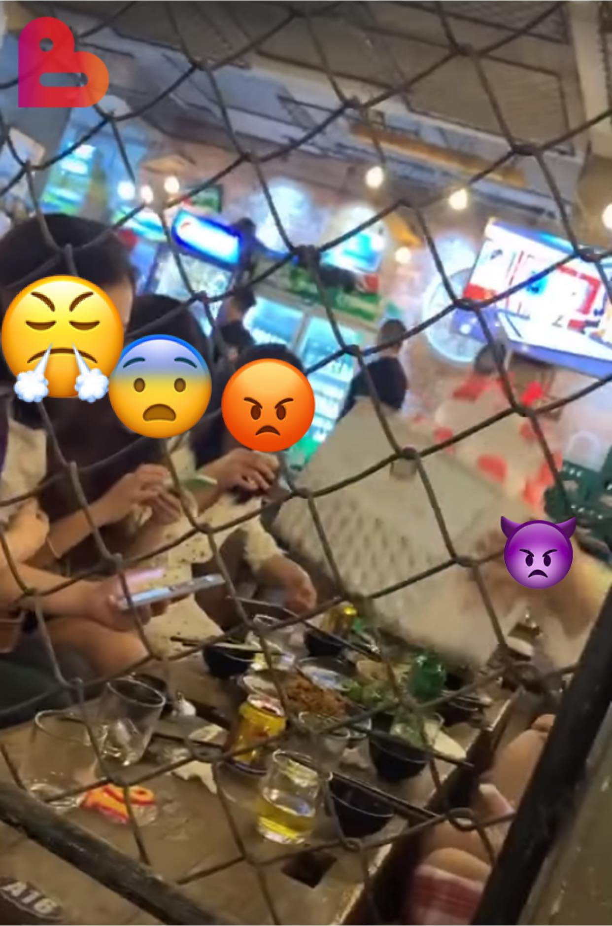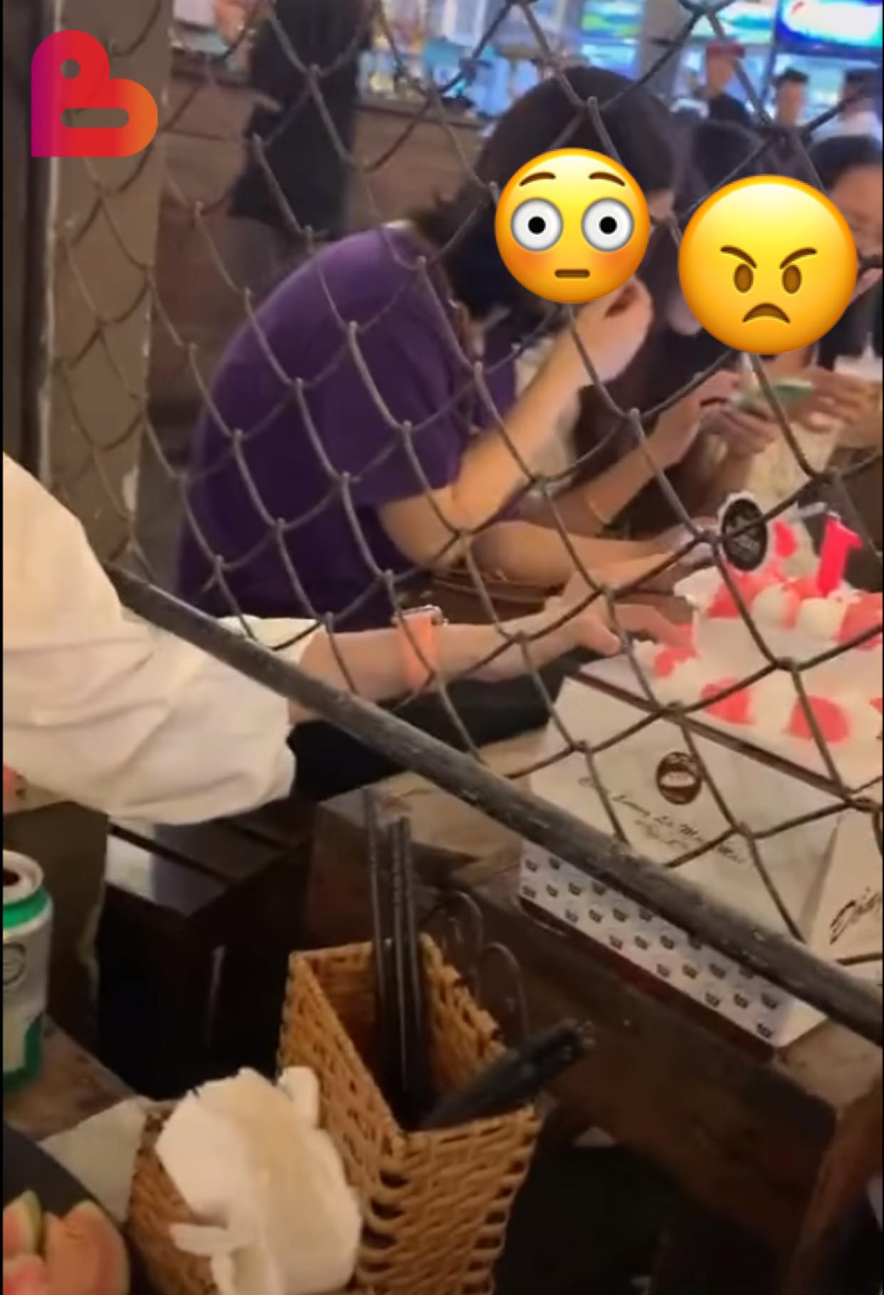Hội bạn bàn bên khi phát hiện chiếc bánh kem bị cô gái ăn vụng đã tỏ ra khá khó chịu nhưng không nói gì, chỉ âm thầm bê chiếc bánh kem rời xa nơi “nguy hiểm” đó.