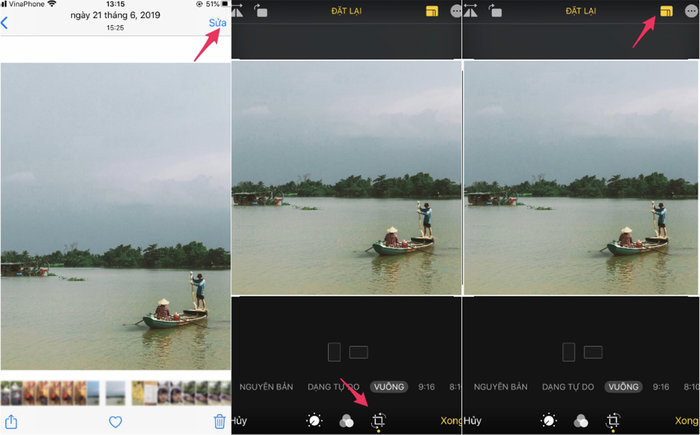 Tại đây bạn cắt thành ảnh vuông và xoay ảnh sao cho đường chân trời trở thành đường chéo của hình ảnh đó.