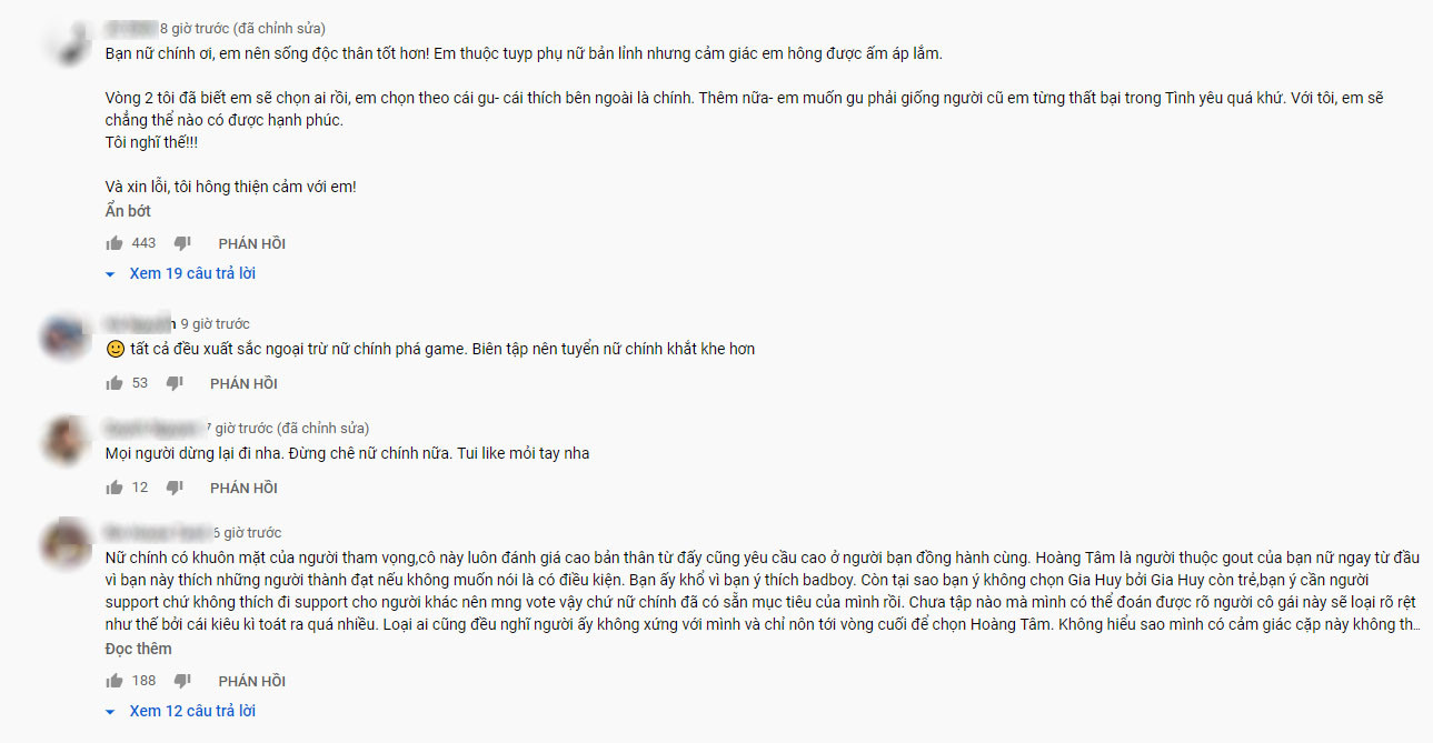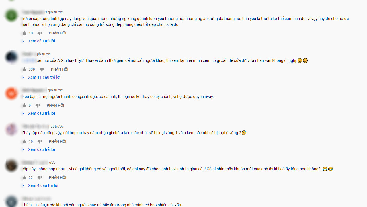 "Sao lại có một số người luôn nhìn vào vẻ bên ngoài của người khác mà đánh giá nhỉ, ai nhìn vào vẻ bên ngoài thấy thiện cảm đều là tốt đâu. Giống chị Cẩm Tú nữ chính "Người Ấy Là Ai" mùa trước, mọi người luôn bình luận tiêu cực về chị ấy nhưng cuối cùng chị lại là người có cái kết đẹp nhất và hạnh phúc nhất, bởi vậy đừng nên nhìn vẻ bên ngoài của người khác mà đánh giá" - tài khoản Tram Do viết.