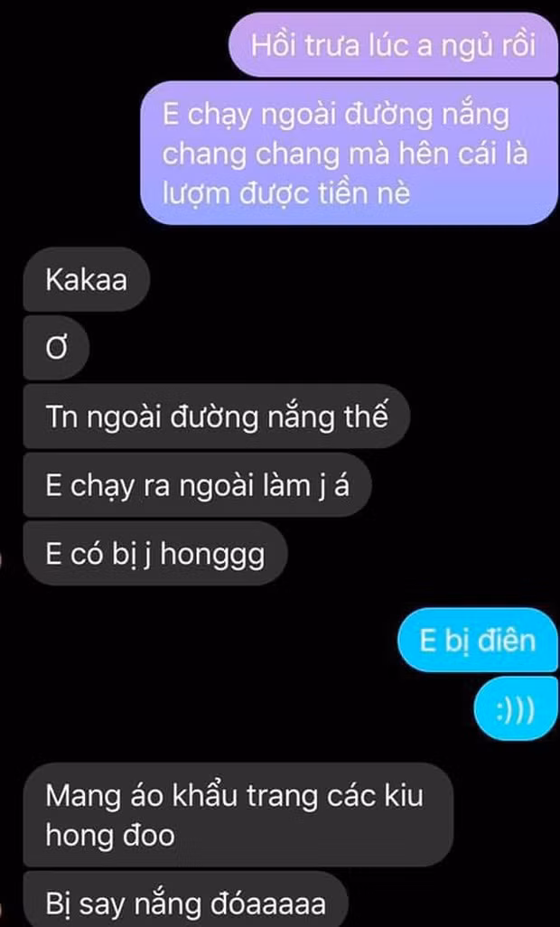 Mới đây, có một cú pháp tin nhắn được cư dân mạng, đặc biệt là các chị em sử dụng nhiều nhất để thử lòng người yêu như sau: “Đây là một phép thử. Hãy nhắn: Nay trưa nắng chang chang, em/anh đang đi lòng vòng lượm được tiền anh/em ạ. Nếu người ấy quan tâm bạn, người ấy sẽ hỏi bạn vì sao lại đi ngoài nắng như thế các kiểu thay vì hỏi bạn lượm được bao nhiêu”.