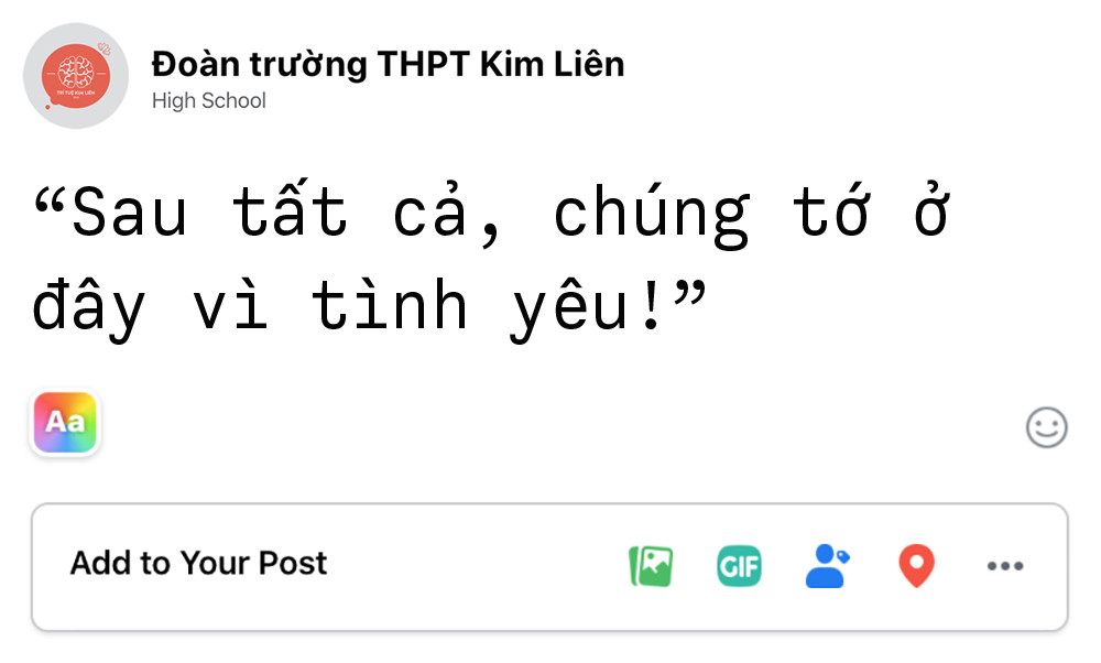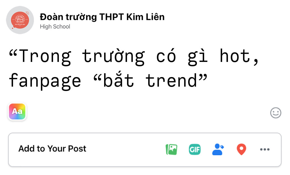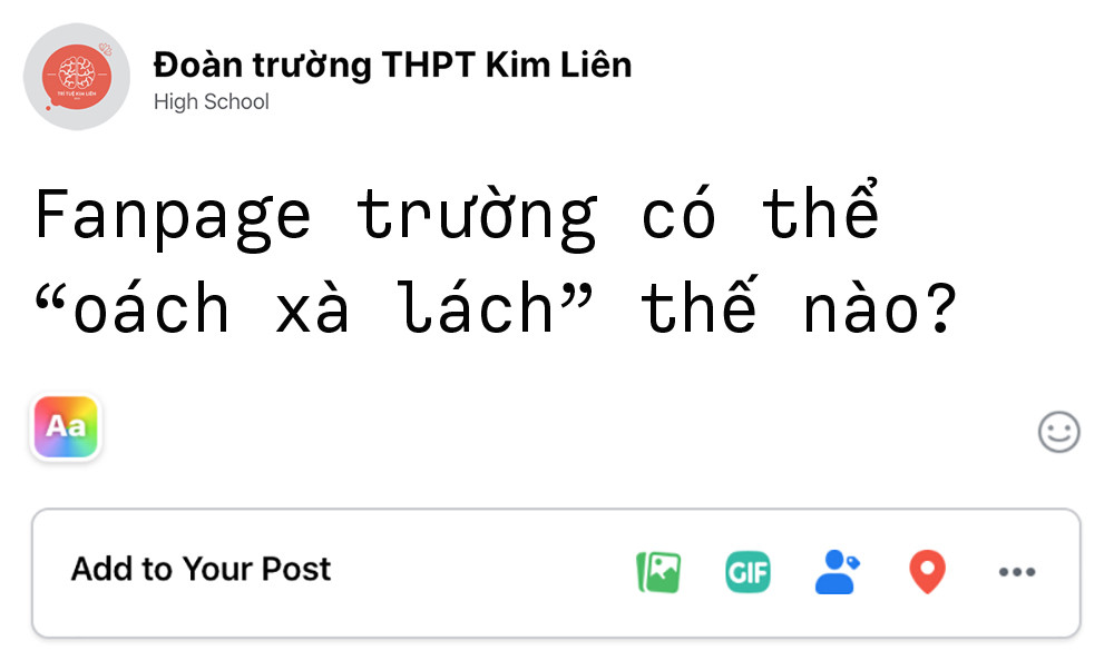 Nhiều bạn vẫn nghĩ rằng fanpage chung của trường chỉ có những thông tin nhắc nhở hay văn bản cứng nhắc, nhưng các bạn học sinh trong Ban chấp hành (BCH) Đoàn trường THPT Kim Liên (Hà Nội) lại trang trí ngôi nhà “Đoàn trường THPT Kim Liên” vô cùng gần gũi với lứa tuổi chúng mình.