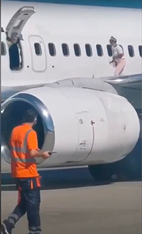Trong đoạn video mới được đăng trên mạng xã hội, có một phụ nữ đang “đi dạo” trên cánh máy bay sau khi đã mở cửa thoát hiểm, chỉ đơn giản vì cô thấy “nóng quá”.