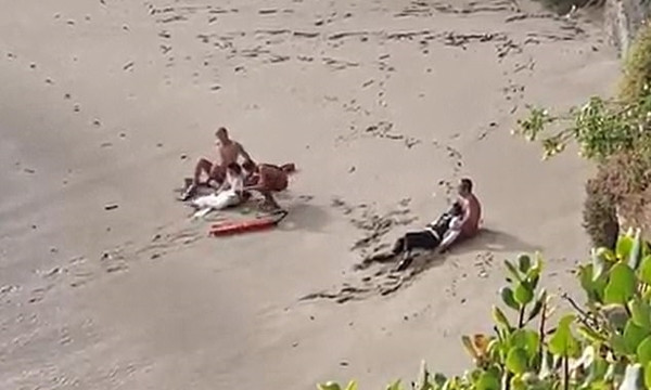 Hai nhân viên cứu hộ cố giúp cô dâu lên bờ. Do sóng lớn nên đội cứu hộ cũng gặp khó khăn. Nhưng cuối cùng thì cặp đôi cũng được đưa lên bờ an toàn. Cô dâu được hai nhân viên cứu hộ bế lên và mặc dù ướt sũng nhưng cô có vẻ không sao, có thể ngồi được ngay. Còn chú rể thì hình như tệ hơn, sau khi được một nhân viên cứu hộ khác lôi lên thì vẫn nằm thượt trên bãi cát.