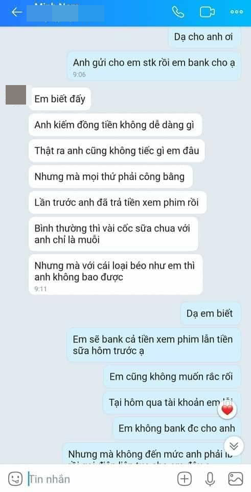 Chưa kịp ấm ức vì bị bỏ rơi nơi quán xá, phải bắt xe ôm đi về thì bạn nữ lại nhận được ngay tin nhắn đòi nợ 35K tiền sữa chua từ anh chàng quản lý. Dù bạn nữ đã sòng phẳng chuyển tiền nhưng anh này vẫn ra sức nhục mạ, thậm chí còn lấy chuyện bạn nữ ăn 2 cốc sữa chua trong buổi hẹn để body-shaming nữa.