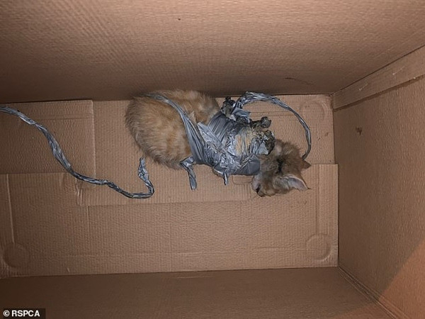 Hiệp hội Hoàng gia Phòng chống Đối xử tàn ác với Động vật (RSPCA) ở bang Queensland (Úc) đã rất sốc khi tìm thấy một chú mèo con trong thùng rác. Mà có rất nhiều lớp băng dính được quấn chặt vào cổ, chân và người, khiến chú mèo con thậm chí không thể cựa quậy.