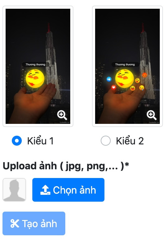 Bước 3: Ảnh tạo thành công ở dưới, lúc này bạn hãy bấm “Tải ảnh” để lưu lại ảnh nền với biểu tượng cảm xúc “thương thương” vừa chế là xong!