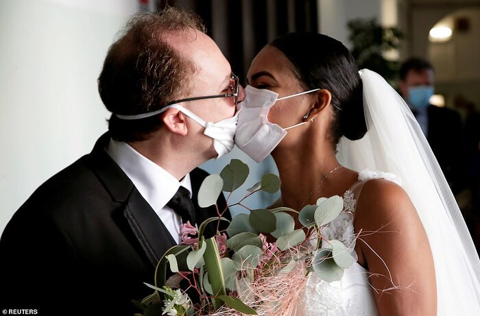 Nụ hôn qua lớp khẩu trang của cặp đôi Italy cùng lễ cưới không khách mời mùa dịch COVID-19