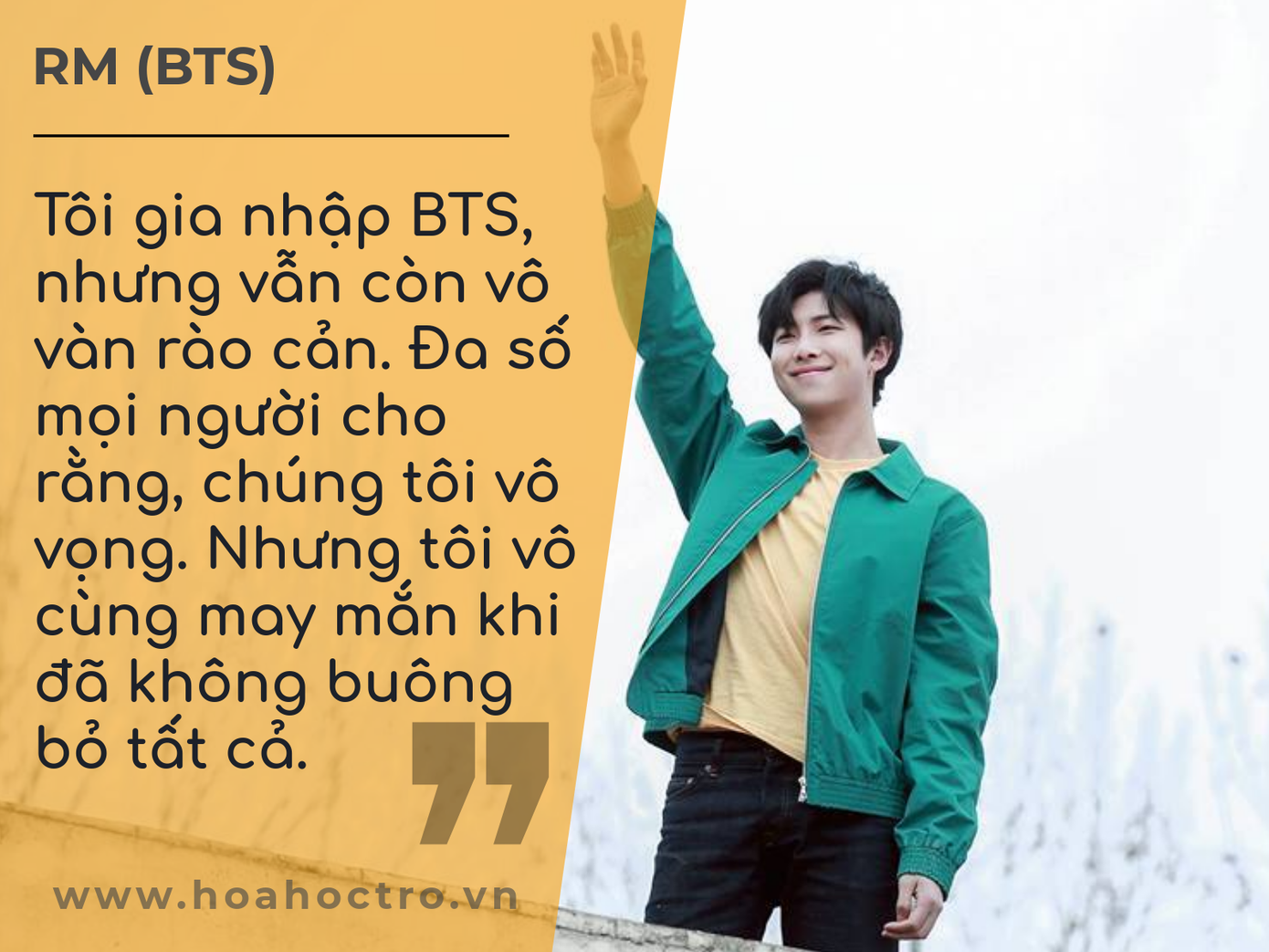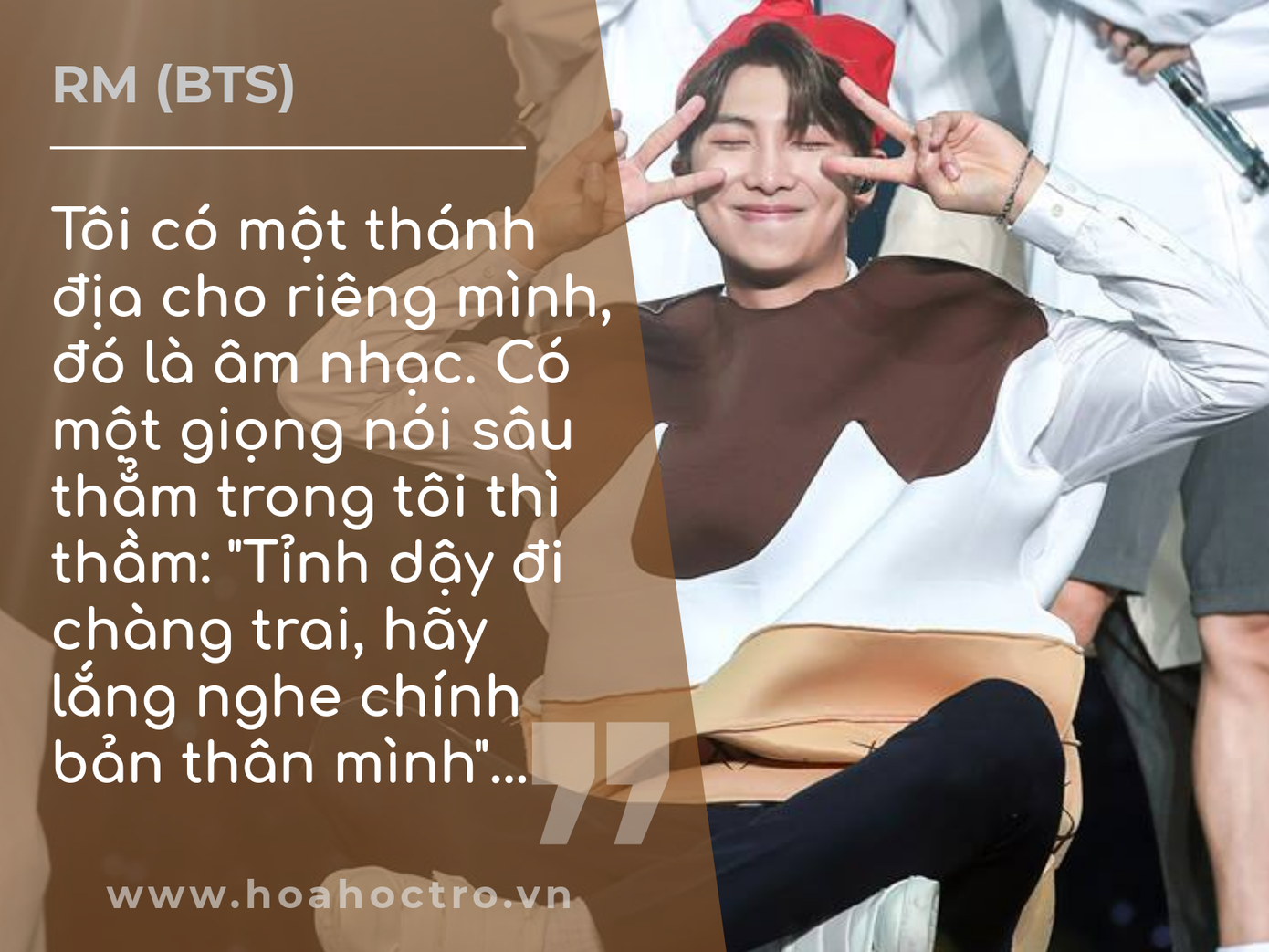 Tôi có một thánh địa và đó chính là âm nhạc. Có một giọng nói nhỏ trong tôi khẽ nói rằng: "Tỉnh dậy đi chàng trai, hãy lắng nghe chính bản thân mình". Nhưng tôi đã mất một khoảng thời gian khá dài nge được âm nhạc gọi tên tôi. Ngay cả sau khi gia nhập BTS thì vẫn còn vô vàn trở ngại. Có thể nhiều người không tin nhưng hầu hết mọi người đều nghĩ rằng chúng tôi vô vọng thật rồi. Đôi khi, tôi chỉ muốn từ bỏ.