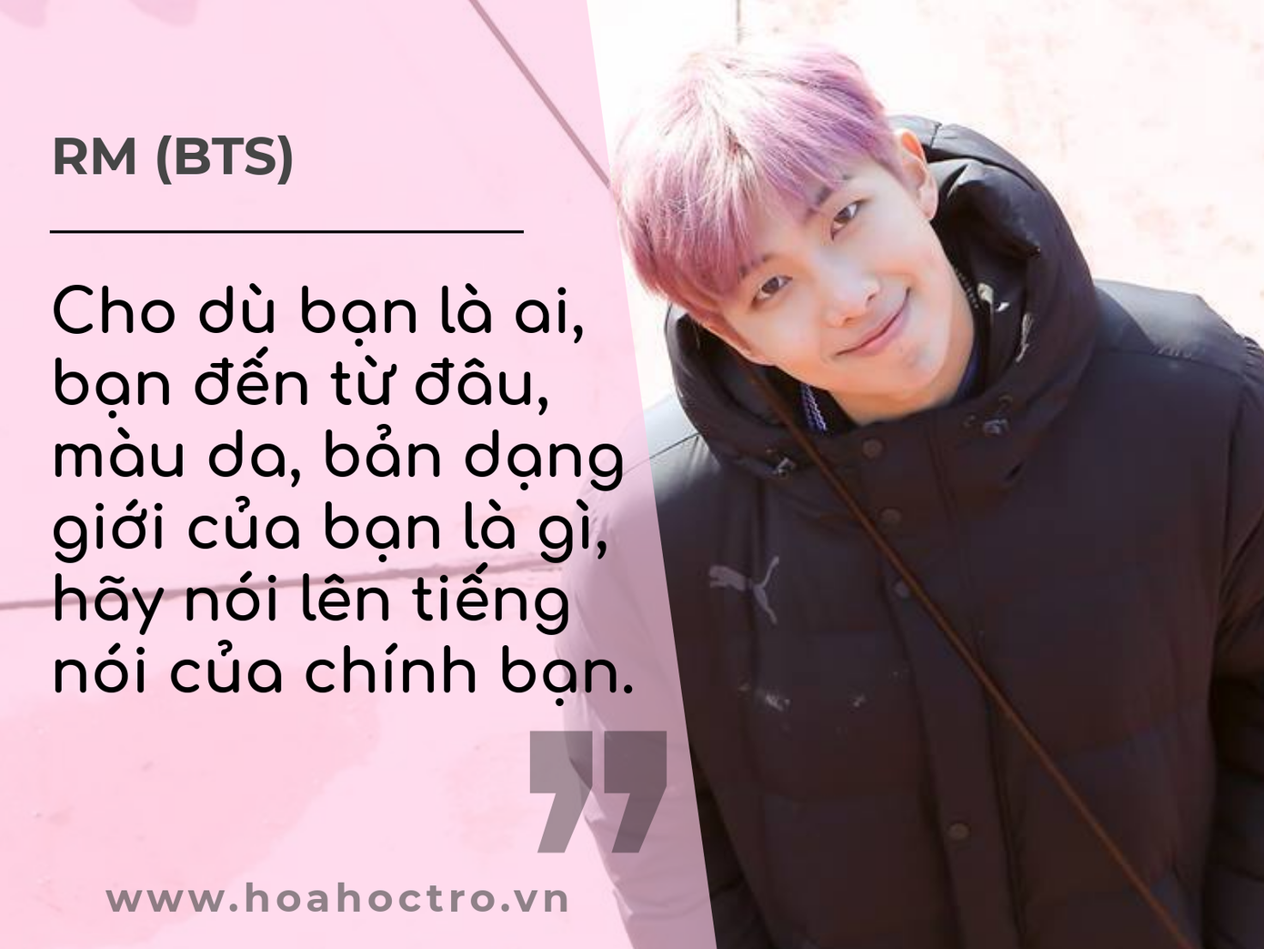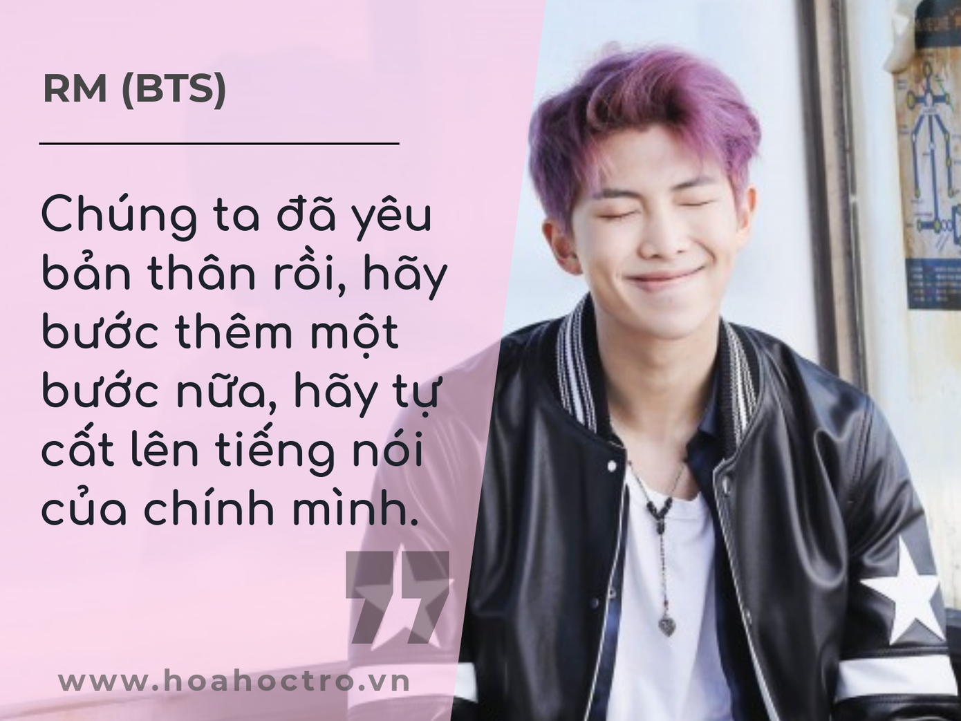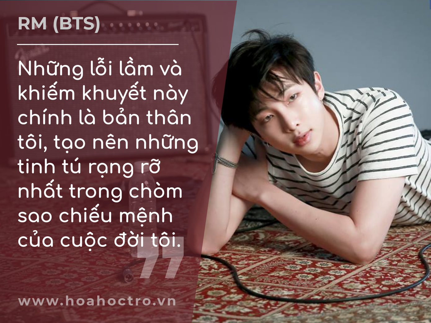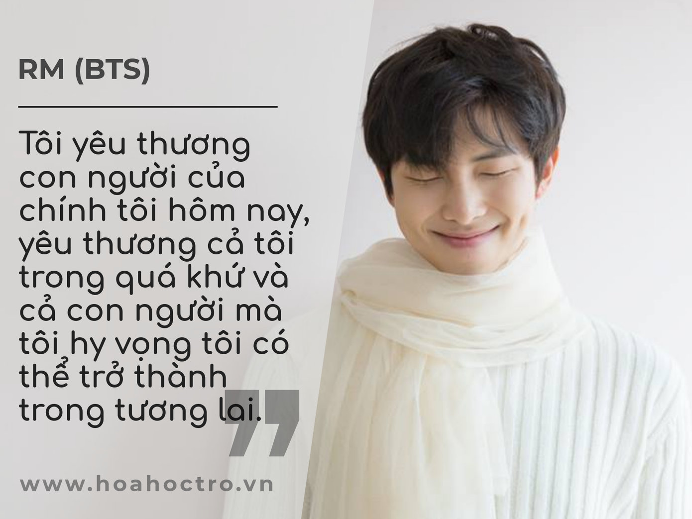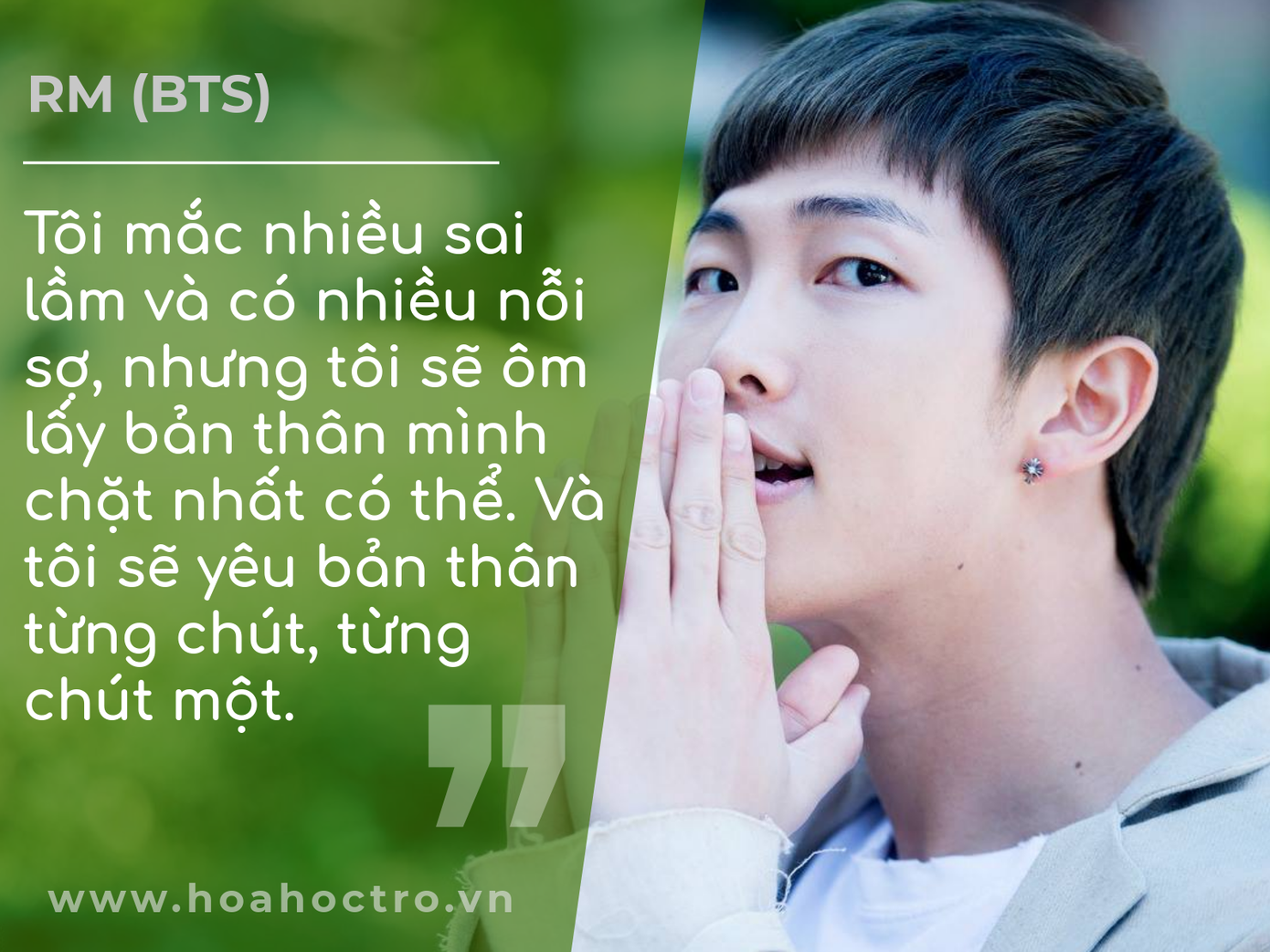 Tôi là Kim Nam Joon, và cũng là RM của BTS. Tôi là một thần tượng và là một nghệ sĩ đến từ một thành phố nhỏ ở Hàn Quốc. Giống như hầu hết mọi người, tôi đã phạm nhiều sai lầm trong cuộc đời mình. Tôi có nhiều lỗi lầm và tôi càng có nhiều hơn những nỗi sợ nhưng tôi sẽ học cách chấp nhận bản thân mình nhiều nhất có thể, và tôi sẽ bắt đầu tập yêu thương chính mình từng chút, từng chút một.
