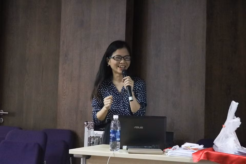 Chị Ploy Ngọc Bích chia sẻ về cách phân tích đề tài, nghiên cứu tìm thông tin và xây dựng cấu trúc để viết một bài báo.