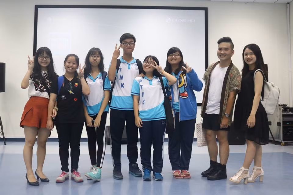 Các bạn chụp ảnh lưu niệm cùng với anh chị huấn luyện viên.