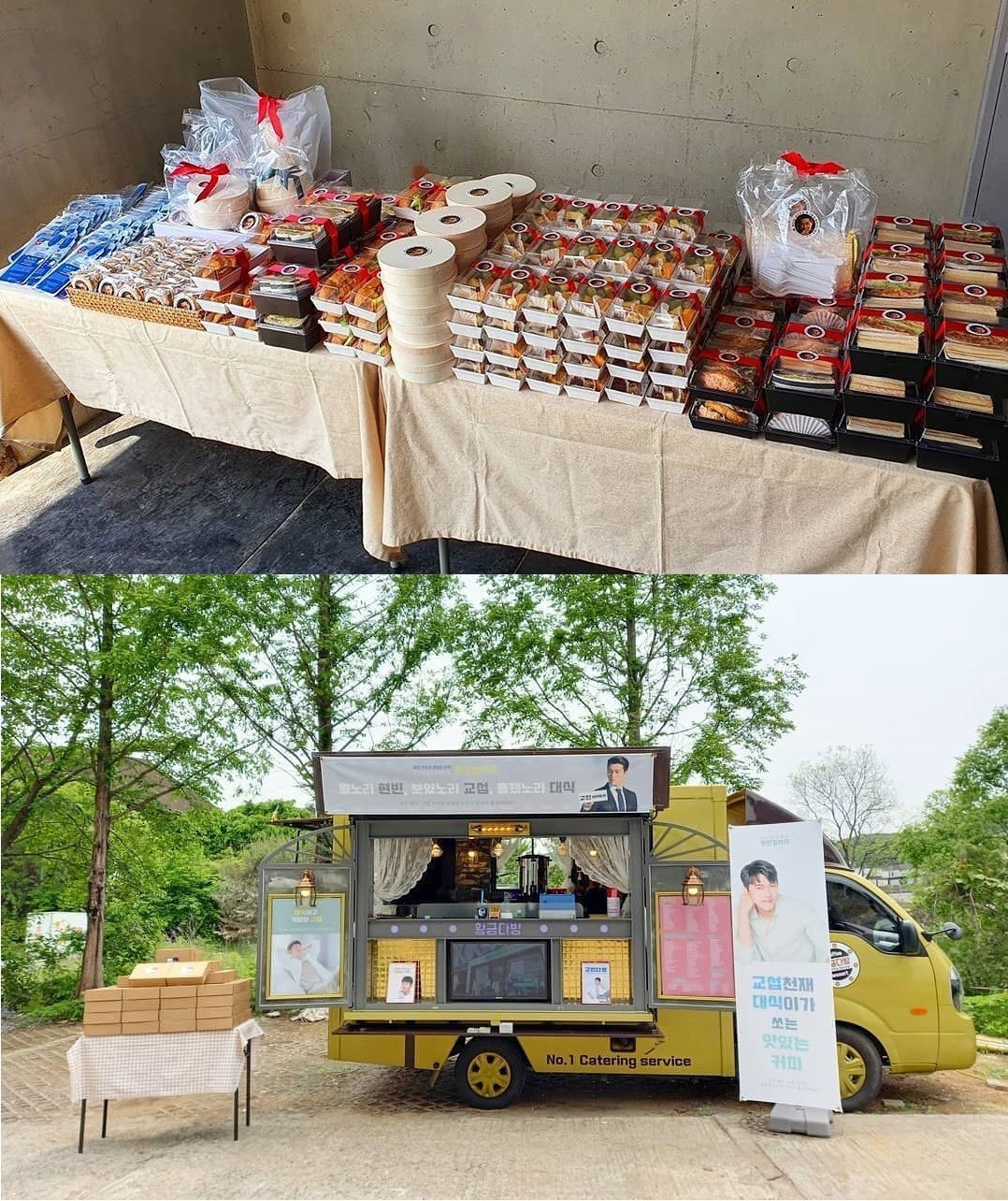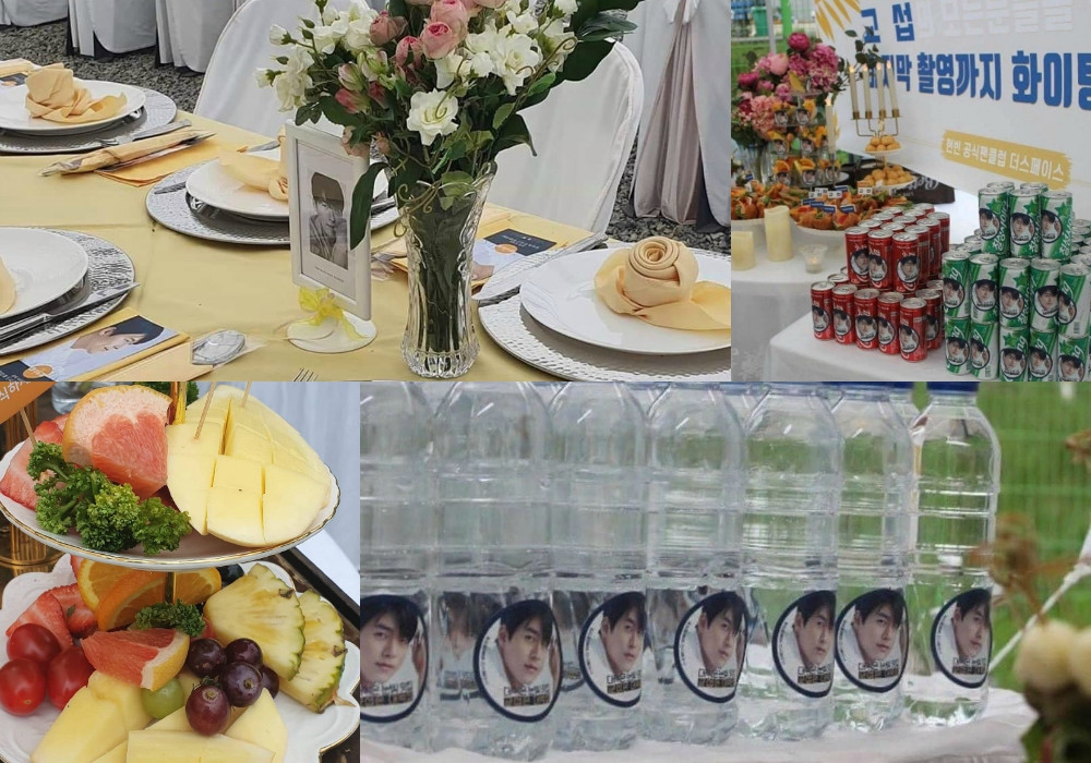 Vẫn biết việc gửi xe đồ ăn uống tiếp tế cho diễn viên và idol khi quay phim hay MV là điều không lạ, thực tế đa số các xe đồ tiếp tế này thường là từ những người bạn thân của idol đó. Idol nhận được xe đồ tiếp tế từ fan không nhiều, mà idol lại được fanclub tổ chức hẳn tiệc buffet sang chảnh mời cả đoàn làm phim thì chắc chỉ có fan của Hyun Bin.