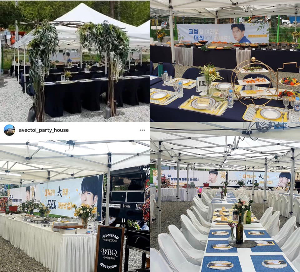 Bữa tiệc vô cùng thịnh soạn được tổ chức trong hai buổi trưa và tối với hai kiểu trang trí khác nhau: Set phông xanh là bữa trưa và set phông trắng là bữa tối. Người phục vụ của bữa tiệc nhận xét fan của Hyun Bin thực sự ở một đẳng cấp và phong cách khác biệt so với các fanclub khác, khiến họ vô cùng khâm phục.