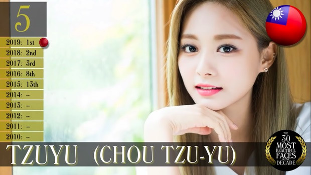 Ngoài Nana, trong top 10 còn có Tzuyu (Twice) đứng thứ 5. Tzuyu vừa mới bứt phá lên dẫn đầu bảng xếp hạng mỹ nhân năm 2019, nên có mặt trong danh sách này cũng là chuyện dễ hiểu.