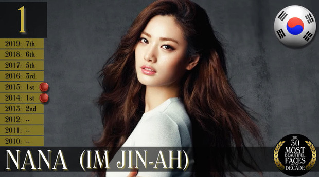 Nhân dịp bước sang thập kỷ mới, TC Candler đã công bố bảng xếp hạng 30 cô gái xinh đẹp nhất trong mười năm qua từ 2010 đến 2019. Tất nhiên danh sách này được chọn lựa từ những mỹ nhân đứng đầu các bảng xếp hạng sắc đẹp hàng năm. Và thật bất ngờ khi Nana (After School) đã trở thành cô gái có gương mặt đẹp nhất trong cả thập kỷ.