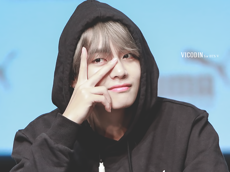 Đúng như nghệ danh của mình, V (BTS) thường xuyên giơ ngón tay thành hình chữ V khi chụp ảnh. Các fan đã quá quen thuộc với việc hai ngón tay V giơ cao ôm trọn mắt phải vào giữa.
