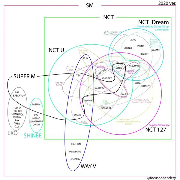 Chẳng thế mà nhiều NCTzen đã nói vui rằng muốn gia nhập fandom NCT thì phải học thật giỏi môn Hình học mới được, chứ người thường nhìn thấy mấy sơ đồ thành viên này sẽ muốn chuyển sang hâm mộ nhóm khác cho yên bình.