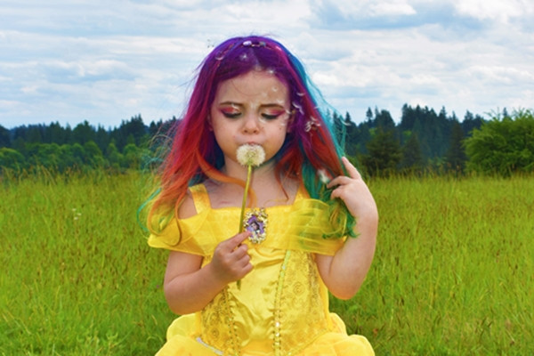 Cô bé ấy rất xinh đẹp, và mái tóc màu cầu vồng càng khiến cô bé có vẻ đẹp thần tiên, kỳ ảo hơn. Nhưng tại sao còn nhỏ vậy mà cô bé đã nhuộm tóc sặc sỡ rồi?