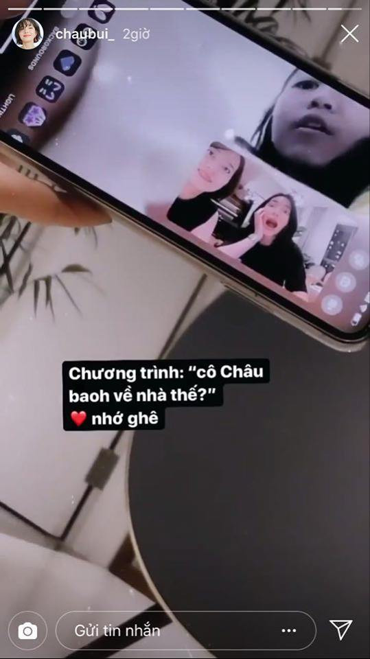 Mới nhất, Châu Bùi vẫn cập nhật story Instagram của mình như mọi ngày trong trạng thái như thể không có chuyện gì xảy ra, còn Binz vẫn im hơi lặng tiếng. Trong bài đăng mới nhất, Châu Bùi vui vẻ gọi điện video cho người nhà của mình với caption: “Cô Châu bao giờ về nhà thế? Nhớ ghê”.