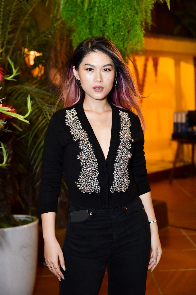 Hiếm khi nhận lời tham dự các sự kiện ăn uống nhưng Trương Thị May cũng đã xuất hiện trong tối khai trương, chân dài chọn cho mình bộ váy ôm, xếp nếp tạo phom quyến rũ.
