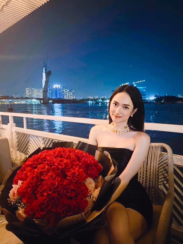 Vừa qua Hương Giang đã đăng tải hình ảnh cùng bạn trai Matt Liu hẹn hò đầy lãng mạn kỷ niệm hai tháng bên nhau. Hương Giang còn được tặng bó hoa hồng nhung rất to từ người yêu khiến khán giả thích thú. Hình ảnh của cặp đôi gây sốt trên nhiều diễn đàn mạng khiến hội chị em "đỏ mắt" ghen tị.